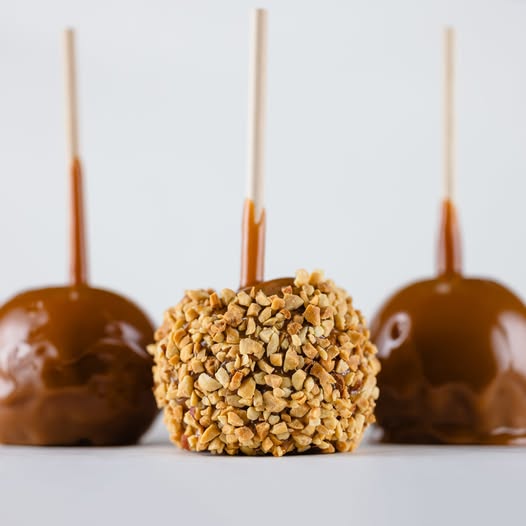 - Apples – Fresh Jonathan apples, hand-dipped in rich, homemade caramel.