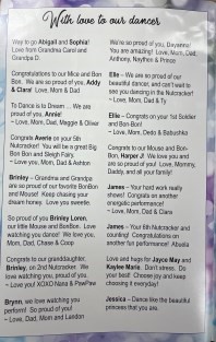 Congratulatory Messages (Due Oct. 19) We will also again be offering the opportunity for you to share short, personalized messages of congratulations and encouragement with Nutcracker dancers in the full-color 2024 Nutcracker Ballet program! (example) To order your “one-liner” messages for the program: